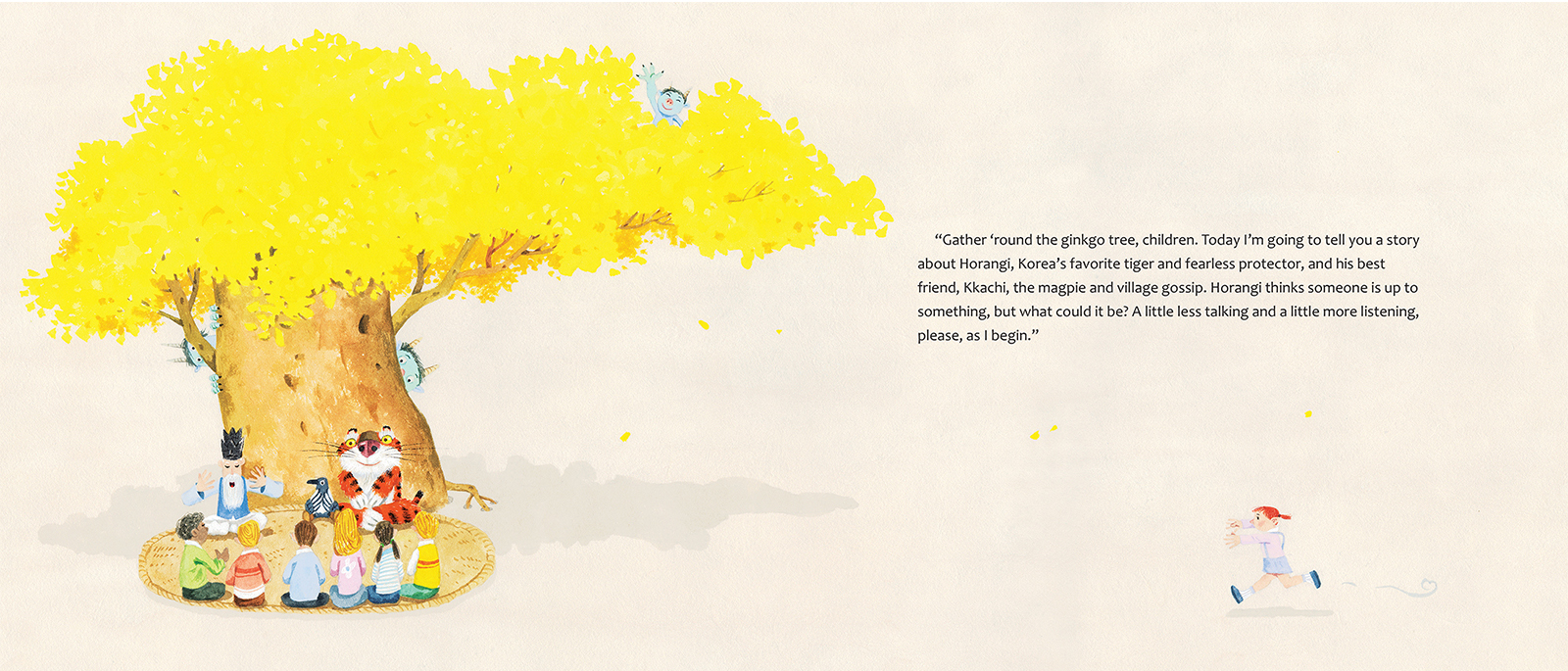 "This is a delightful story that incorporates beloved Korean characters. A nice introduction to a culture that many don't know. With charming illustrations that will let a child discover so much on their own, the story leads us to what is so important, caring for and about each other. A perfect book for introducing American children to Korean words and customs. There is just the right tension for young listeners as they are gently led on a picnic...only something isn't quite right. What could it be? Who wouldn't want Horangi to protect them? And who wouldn't want a buddy like Kkachi?"